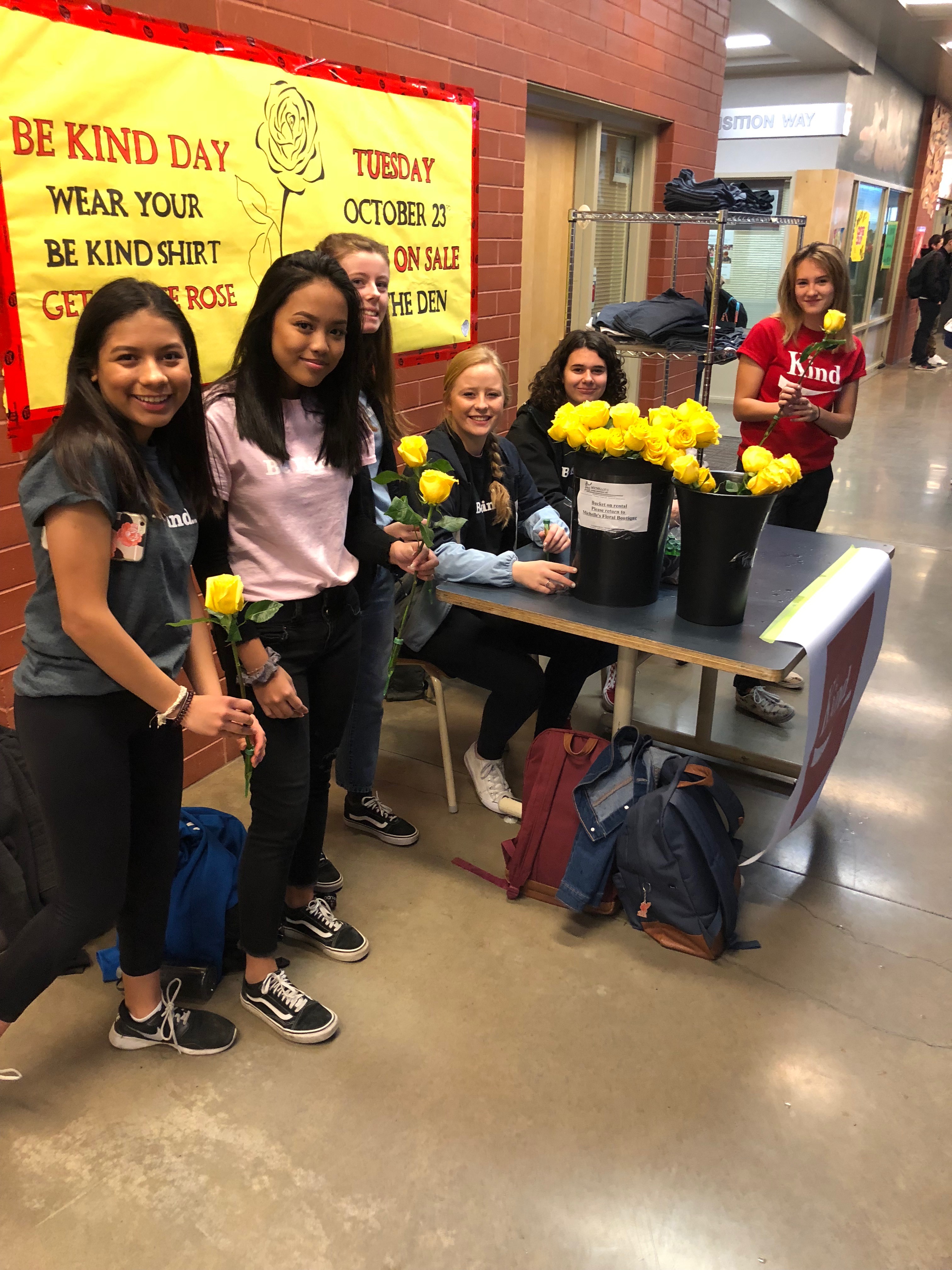 If a student wore their Be Kind shirt they received a yellow rose which symbolizes friendship. They were then encouraged to pass the rose on to someone they appreciate. A Leadership student approached Michelle’s Floral Boutique near Centennial and they generously donated 4 dozen yellow roses.