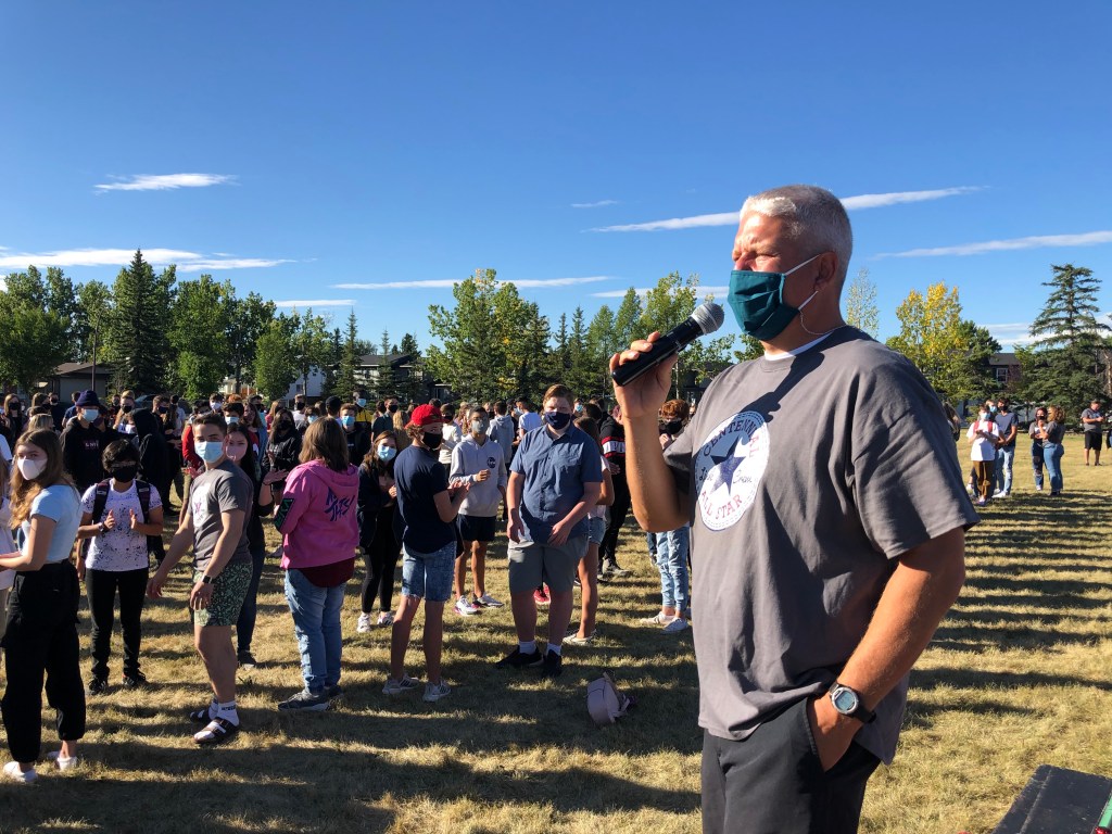 First Day for the 10s. The weather gods have cooperated for our opening assembly on the field. Thank goodness because there was no Plan B. The music is grooving thanks to a staff member who loaned us her generator. No plug ins on the field. 10s are lined up in their rows with masks on. Much tougher to deliver an assembly on the field rather than the gym. But it worked. The 10s met new people, connected with their Link Leaders, and got the school tour. It was a great day. The Link Leaders and my Staff team were incredible!!!