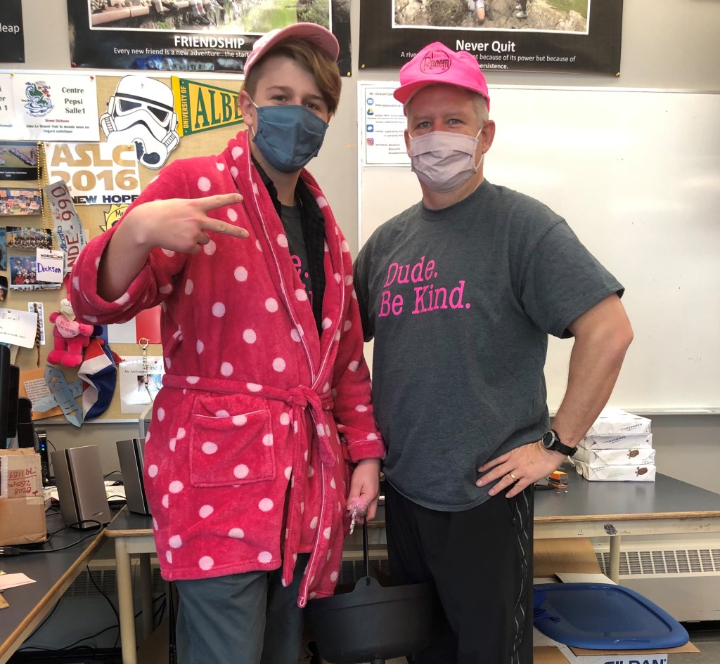 #1 I have been lucky enough to teach three of my sons in Leadership at Centennial. My youngest, Ben, is now in Gr 11 Leadership. We got to celebrate / promote #bekindyotes Pink Shirt Day together. He was dressed up pinktastic, handing out Dude Be Kind wristbands, and jamming to a pink playlist. This will make for a great picture at his wedding one day.