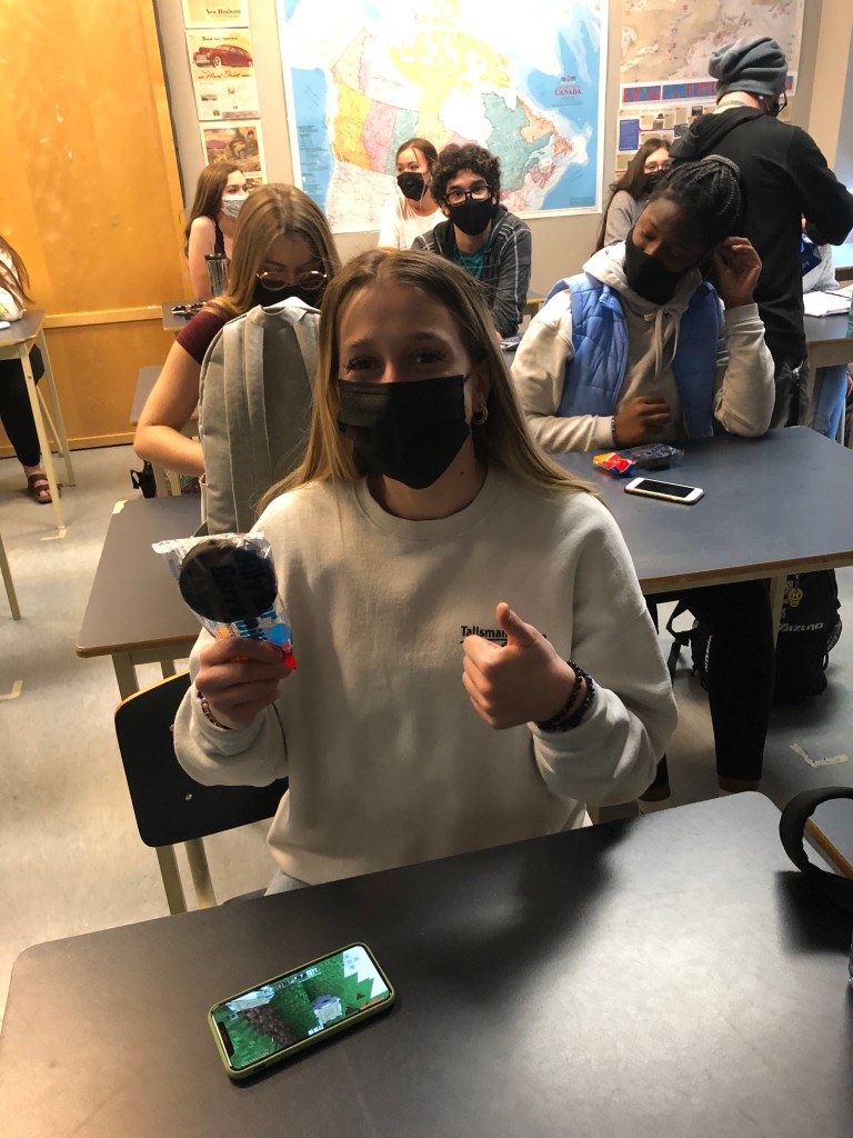 The game did get a bit streaming laggy near the end. But I got numerous reports that kids weren’t too worried about points. They were having fun guessing the answers. There were also several comments from students like this – “So that’s what that teacher looks like behind the mask!” We were able to build connections with students and 15 of our staff.