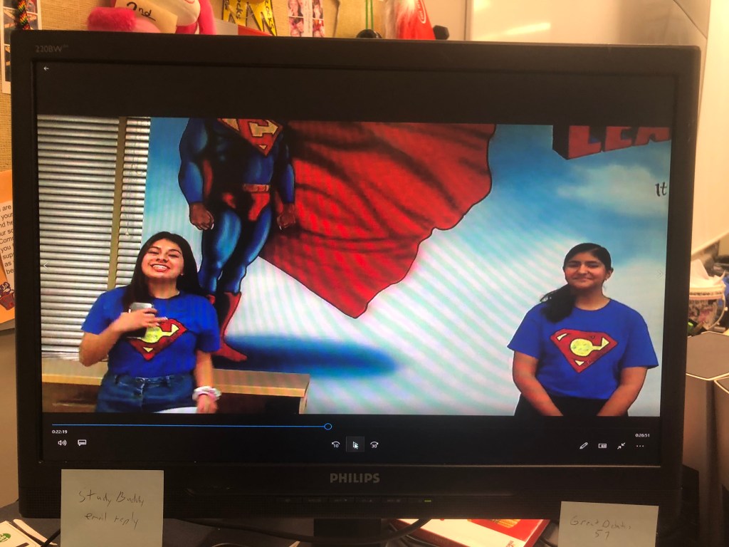 Next we had our first MC team on camera. They were standing 6 feet apart so that they could take off their masks. They got everyone fired up for the Pep Rally, thanked staff for giving up instructional time, and then introduced the Yote Street Boys. Then we pushed play.