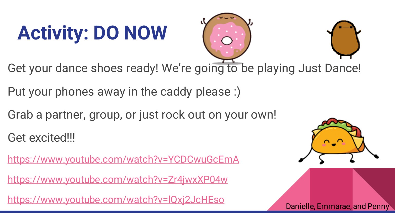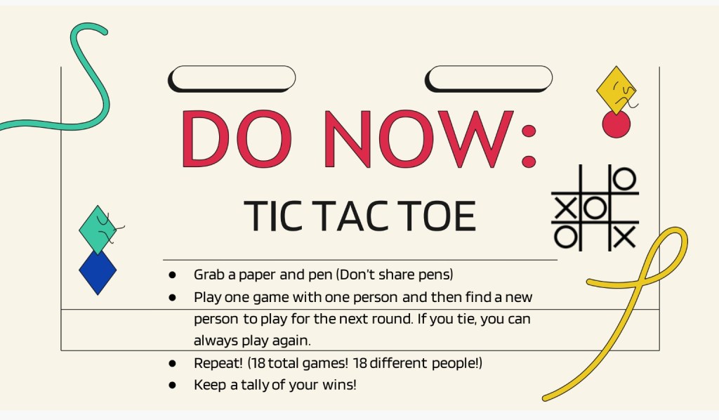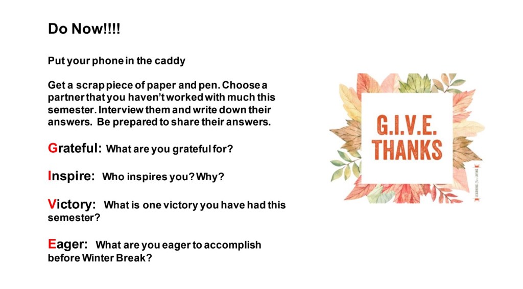 Click here to download my Do Now PowerPoint.  Tom and Jane shared theirs with me and I have made some additions with help from others. https://1drv.ms/p/s!Ah1BegozVtqB4if2RSgXWpX5SFKf?e=oMiNvk