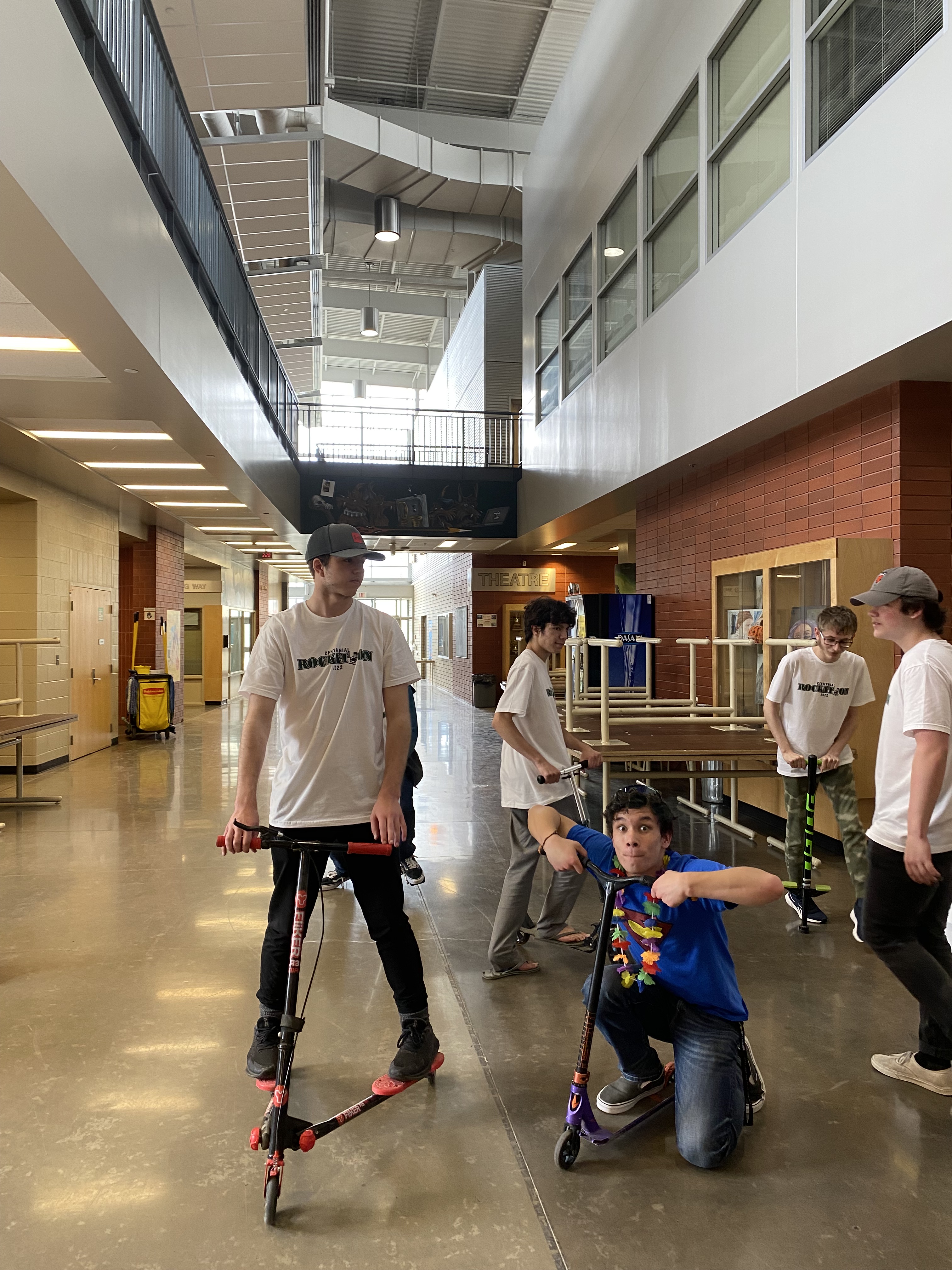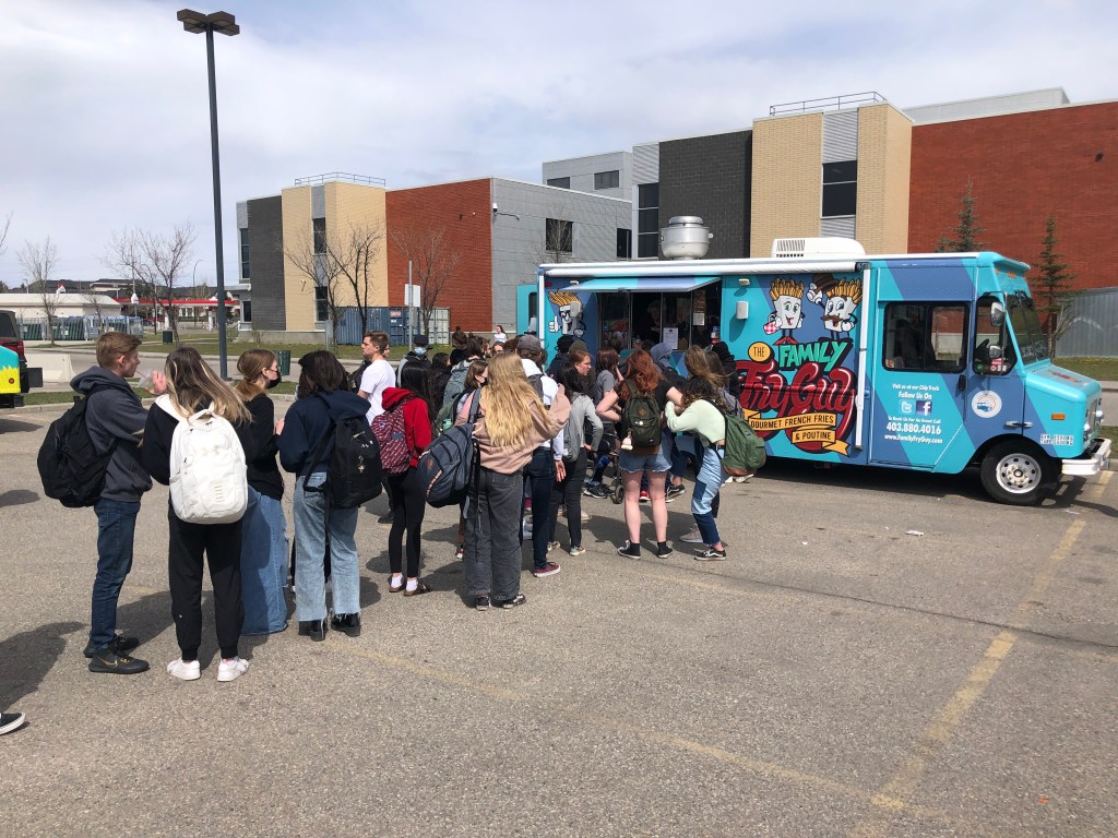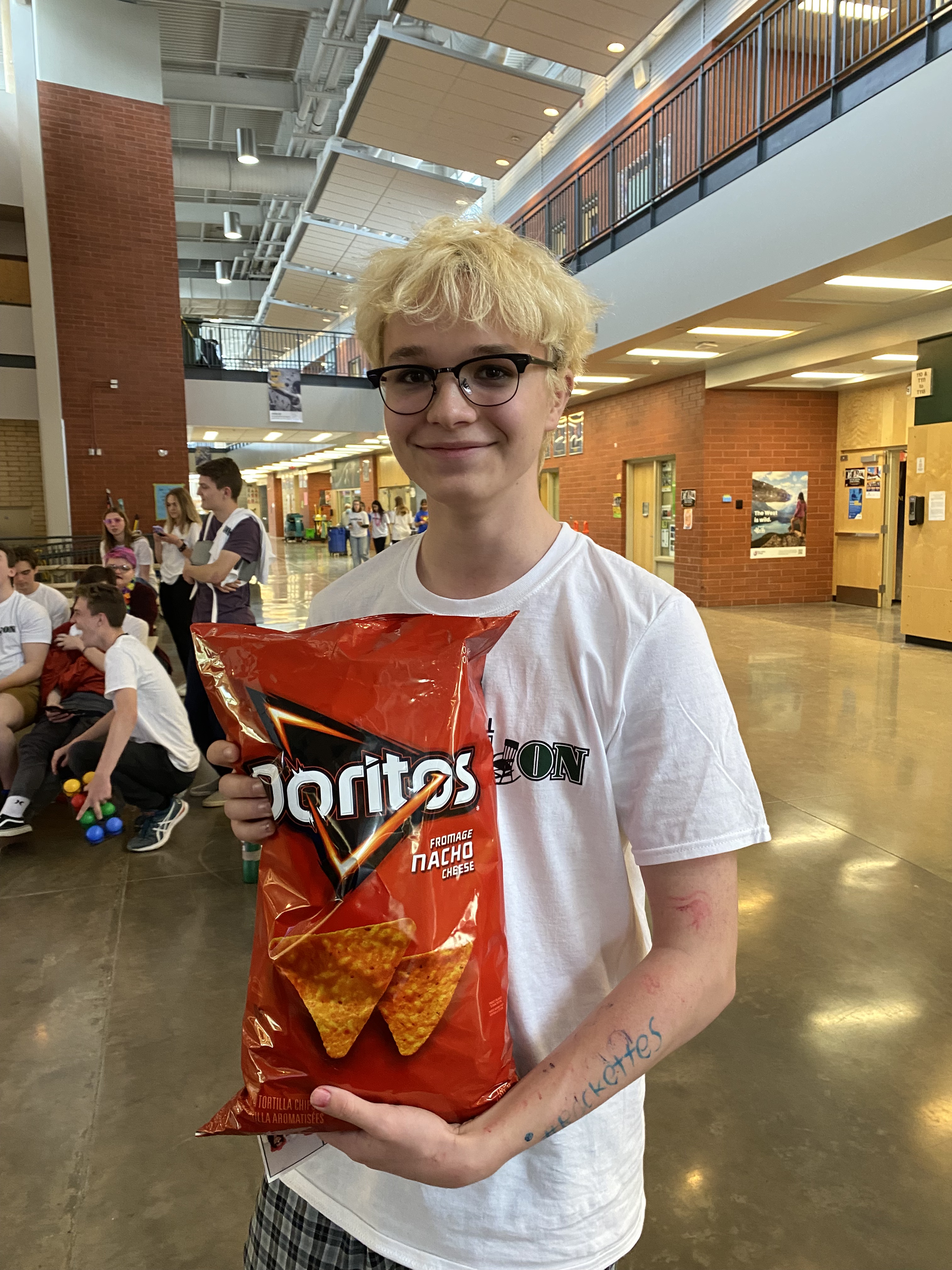 Someone in each group has to be rocking in the chair from 8:30 AM until 11:30 at night. We brought in food trucks at lunch which were available to the whole school. Part of the truck proceeds went to Children’s Hospital. Then after school we run activities including a photo booth, Centennial trail ride, Kahoot, Predator Prey, open gym, MRU students providing massages, and a Loose Moose professional improve show. It was a big success. We raised over $13,000.