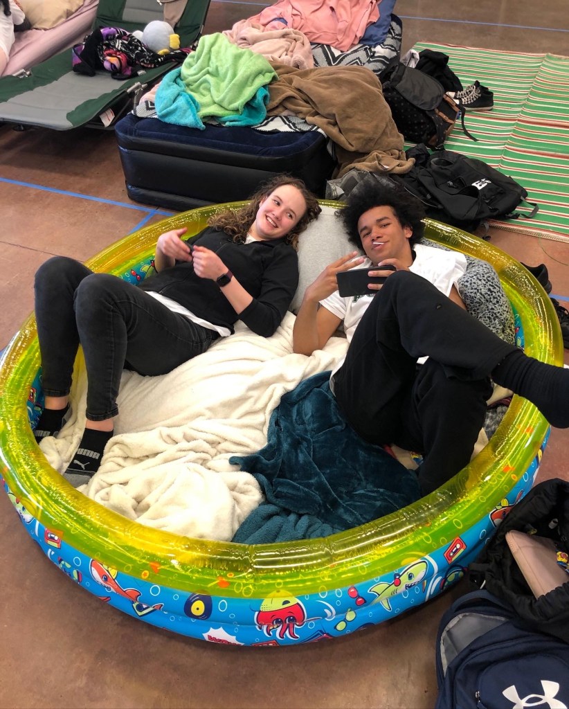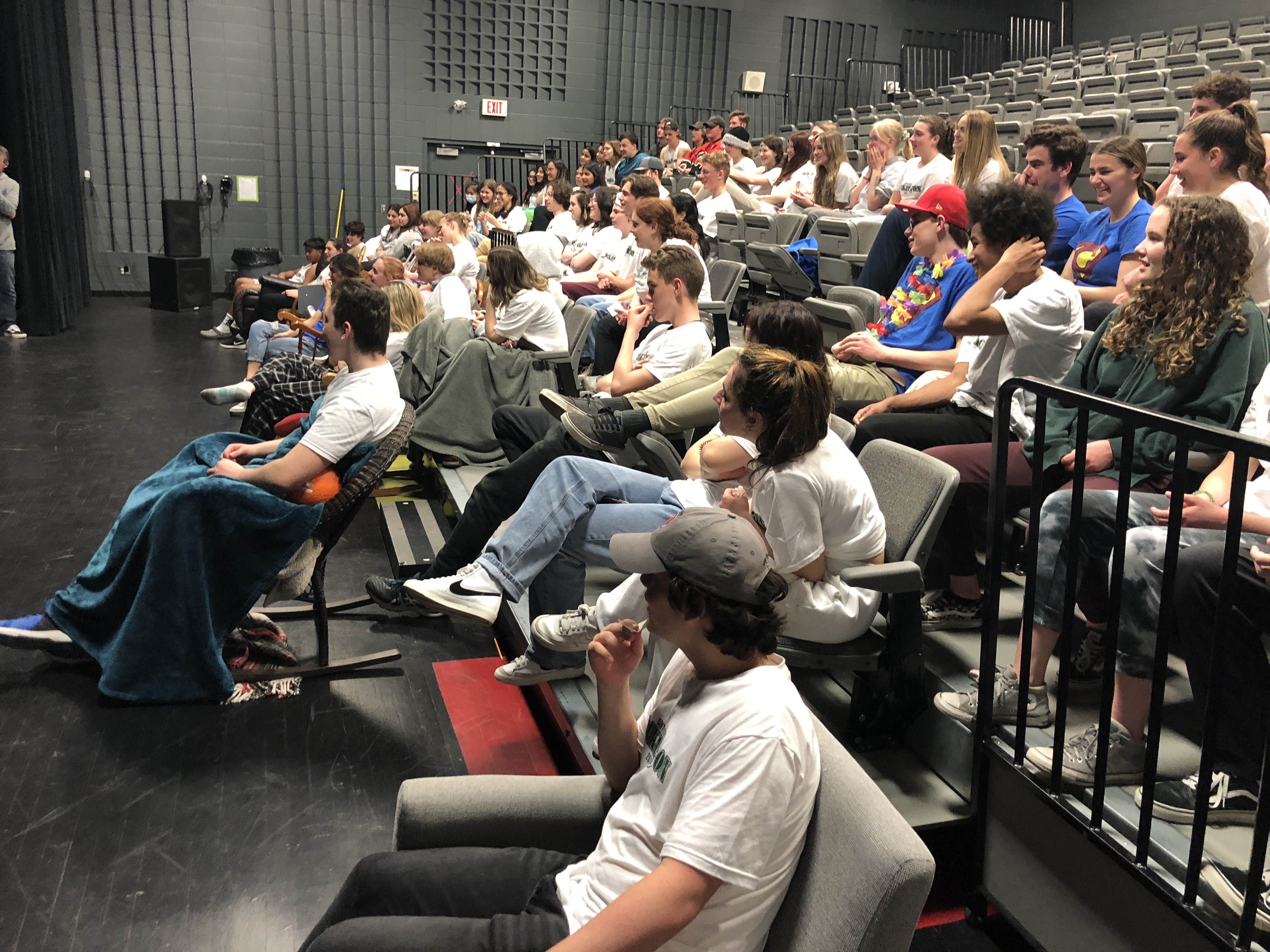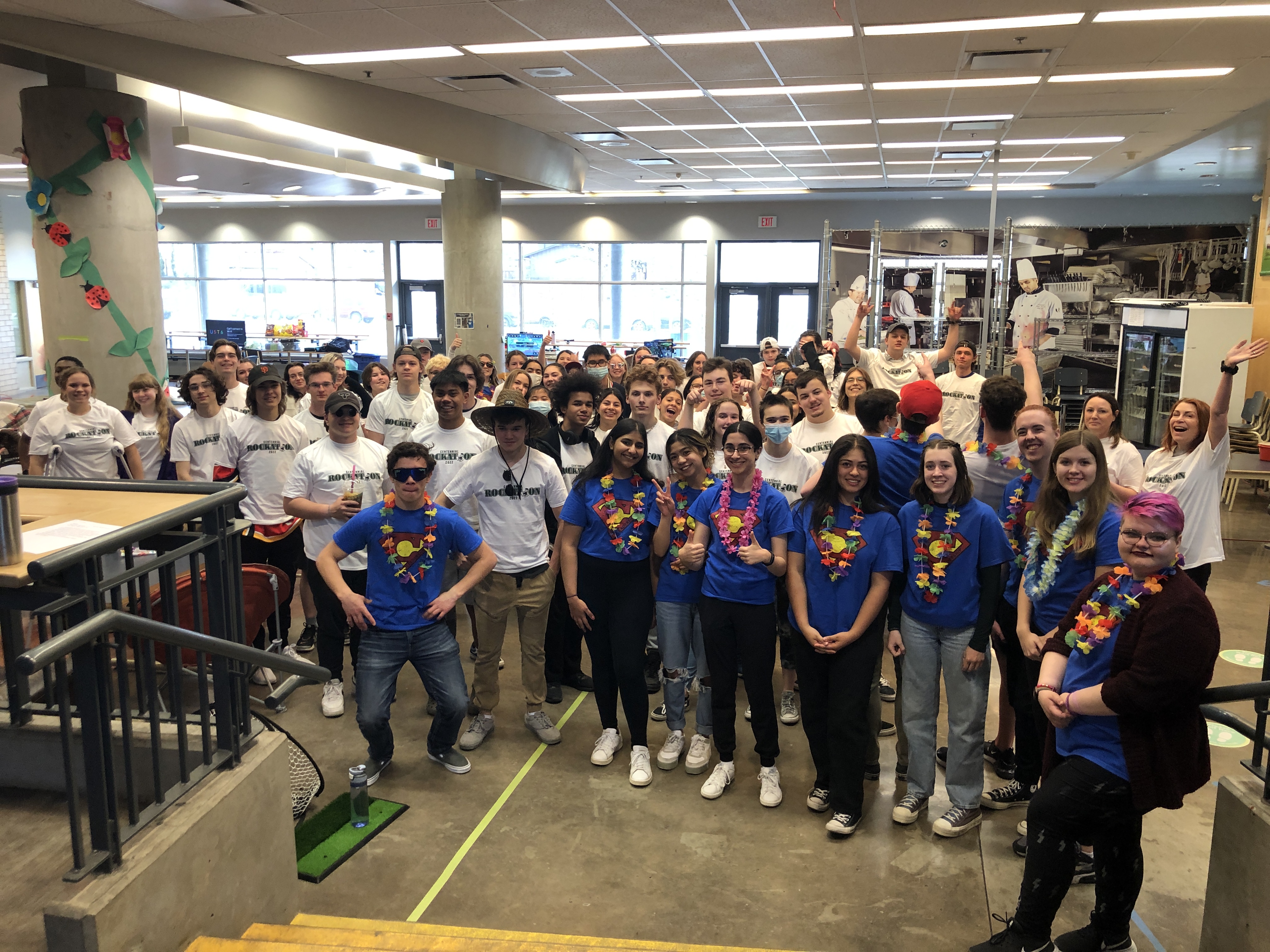Someone in each group has to be rocking in the chair from 8:30 AM until 11:30 at night. We brought in food trucks at lunch which were available to the whole school. Part of the truck proceeds went to Children’s Hospital. Then after school we run activities including a photo booth, Centennial trail ride, Kahoot, Predator Prey, open gym, MRU students providing massages, and a Loose Moose professional improve show. It was a big success. We raised over $13,000.