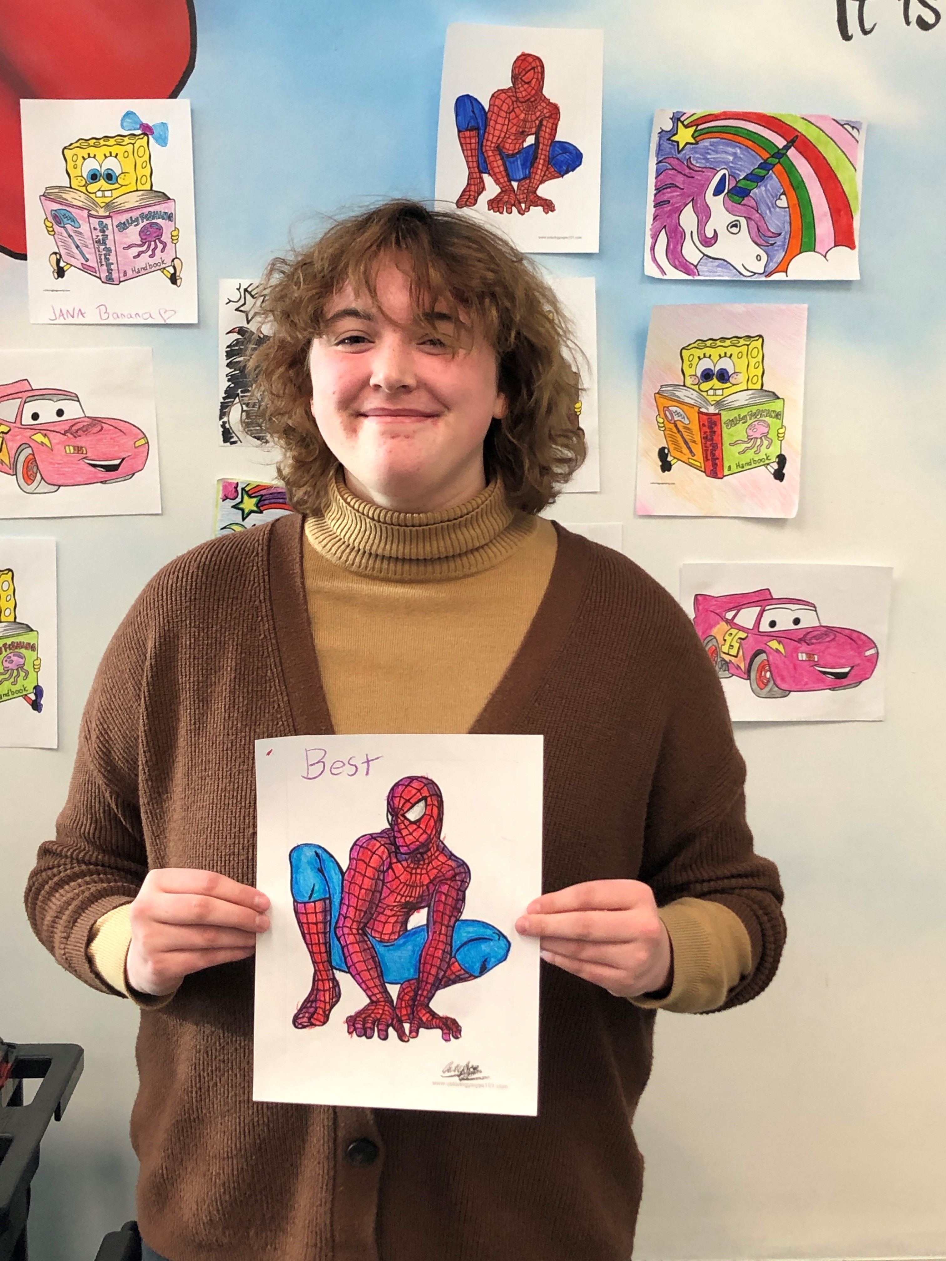 Grade 12 Leighton then tells me the reason they signed up for Leadership class at Centennial. Leighton visited the Leadership classroom during Gr. 9 tours and saw all the student coloring on display. They said that looked like a class they wanted to be a part of. Leighton then quickly assured me they have done many other awesome things in the class beyond coloring.