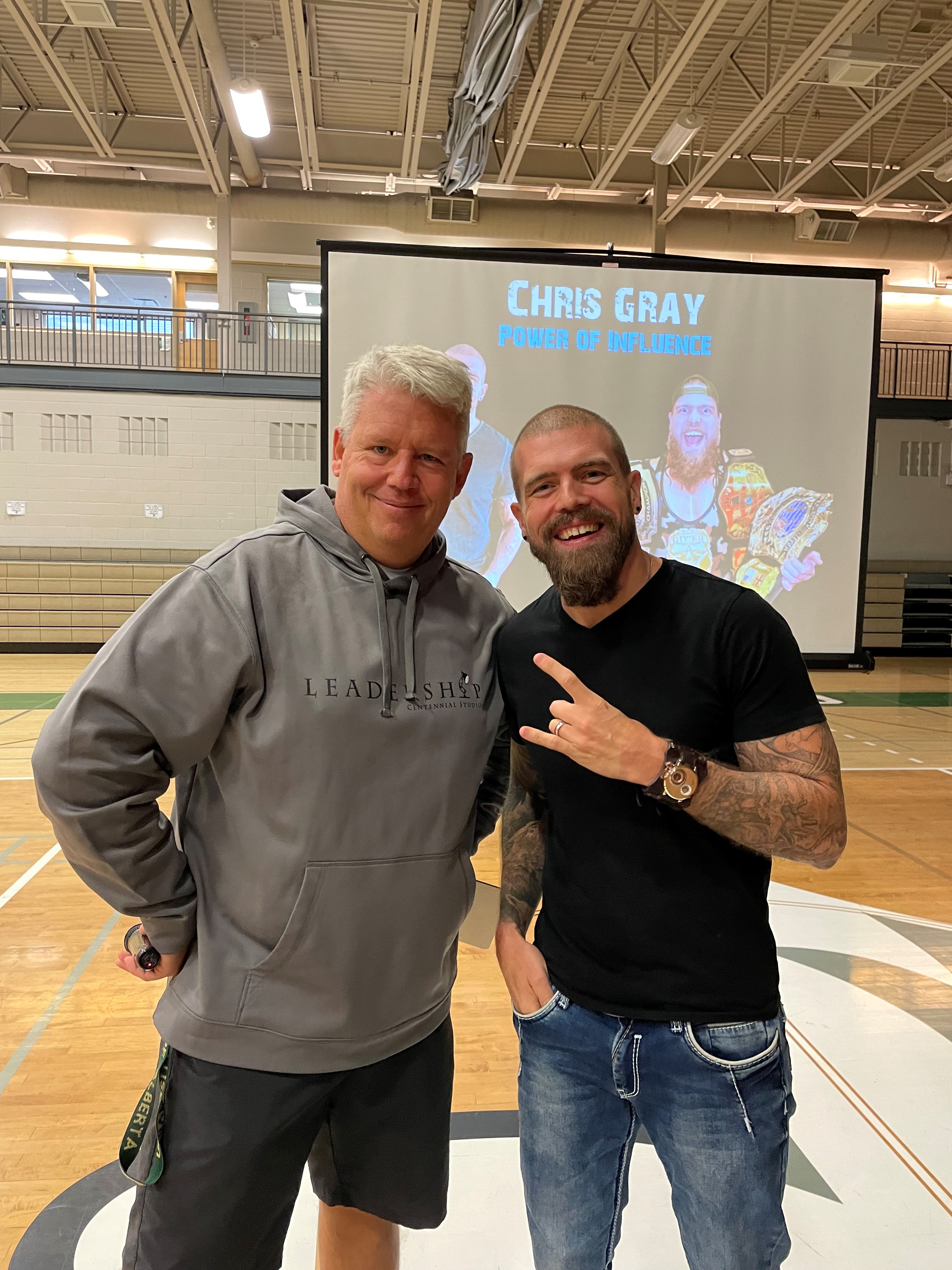 Chris Gray came to speak to our school last week. He gave two keynotes with our school split in half. He also gave three leadership workshops to my classes. We put him to work and he was excellent. Chris is a professional speaker, professional wrestler, certified teacher, and pops to 4 kidlets. As a pop to 4 sons I feel like this makes me almost as cool as him. Chris will make your school and leadership program better!